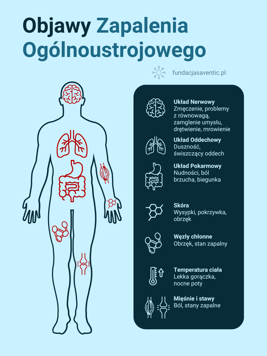 Stan zapalny ogólnoustrojowy to przewlekła odpowiedź układu odpornościowego, która obejmuje cały organizm, a nie tylko jedno miejsce, jak w przypadku miejscowego urazu czy infekcji.
